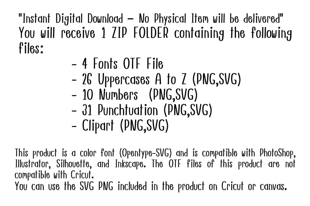 You will receive 4 FOLDERS in 1 ZIP file containing the following files: